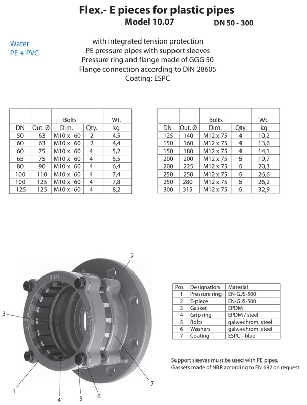 Flex.-E-Stücke für Kunststoffrohre, zugfest