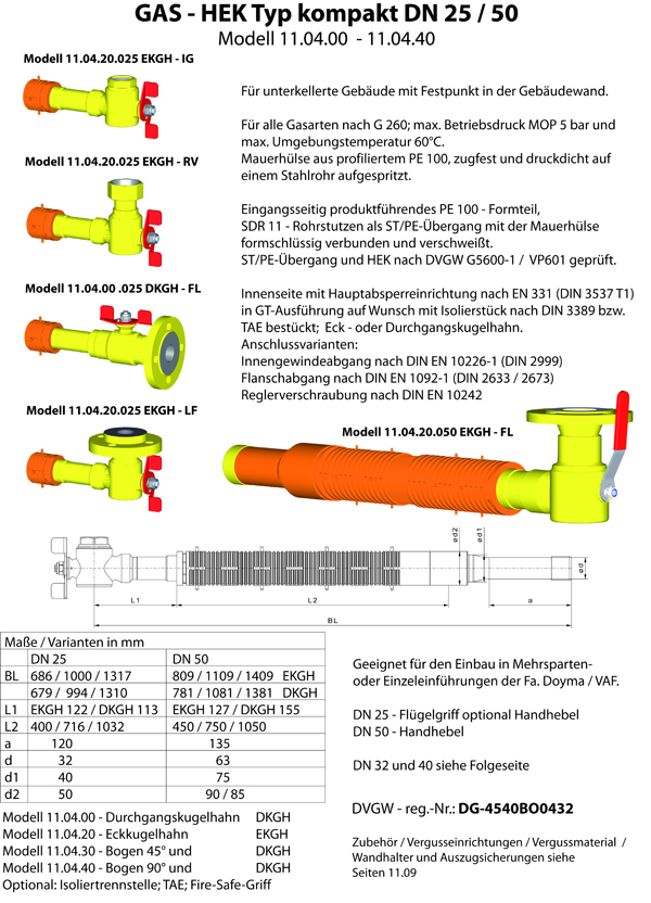 GAS - HEK Typ kompakt DN 25 / 50 für unterkellerte Gebäude